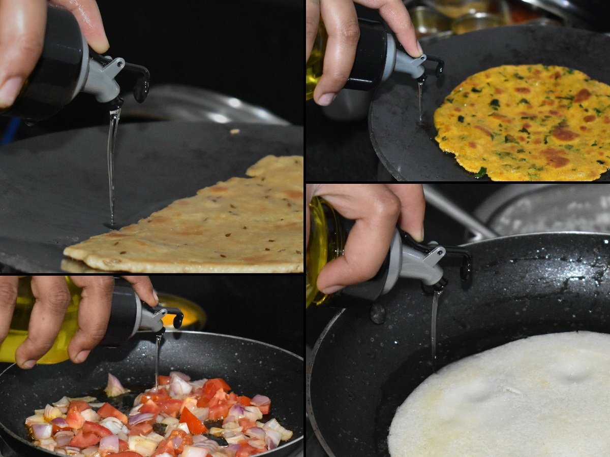 Pourer allows for easy, controlled pouring and prevents messy spills.