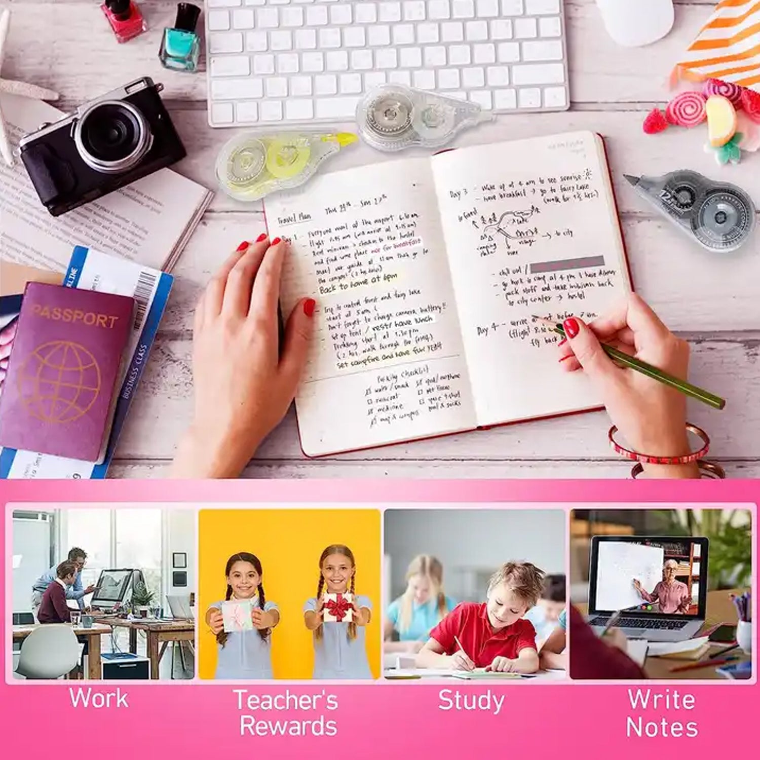 HIGH QUALITY: Our correction tapes are a neat alternative to traditional liquid correction fluid or correction pens, non-toxic and odorless, Applies Dry, no demage to your health, safety to use. Tapes is mess-free and tear resistant --great for correcting single or multiple lines.