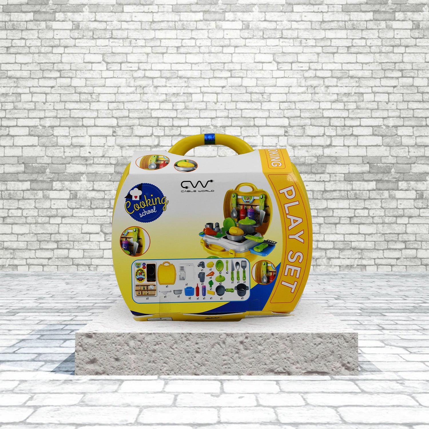 the Cooking Toy Plastic Kids Cooking School Play Set, featuring 26 pieces for an engaging culinary experience.