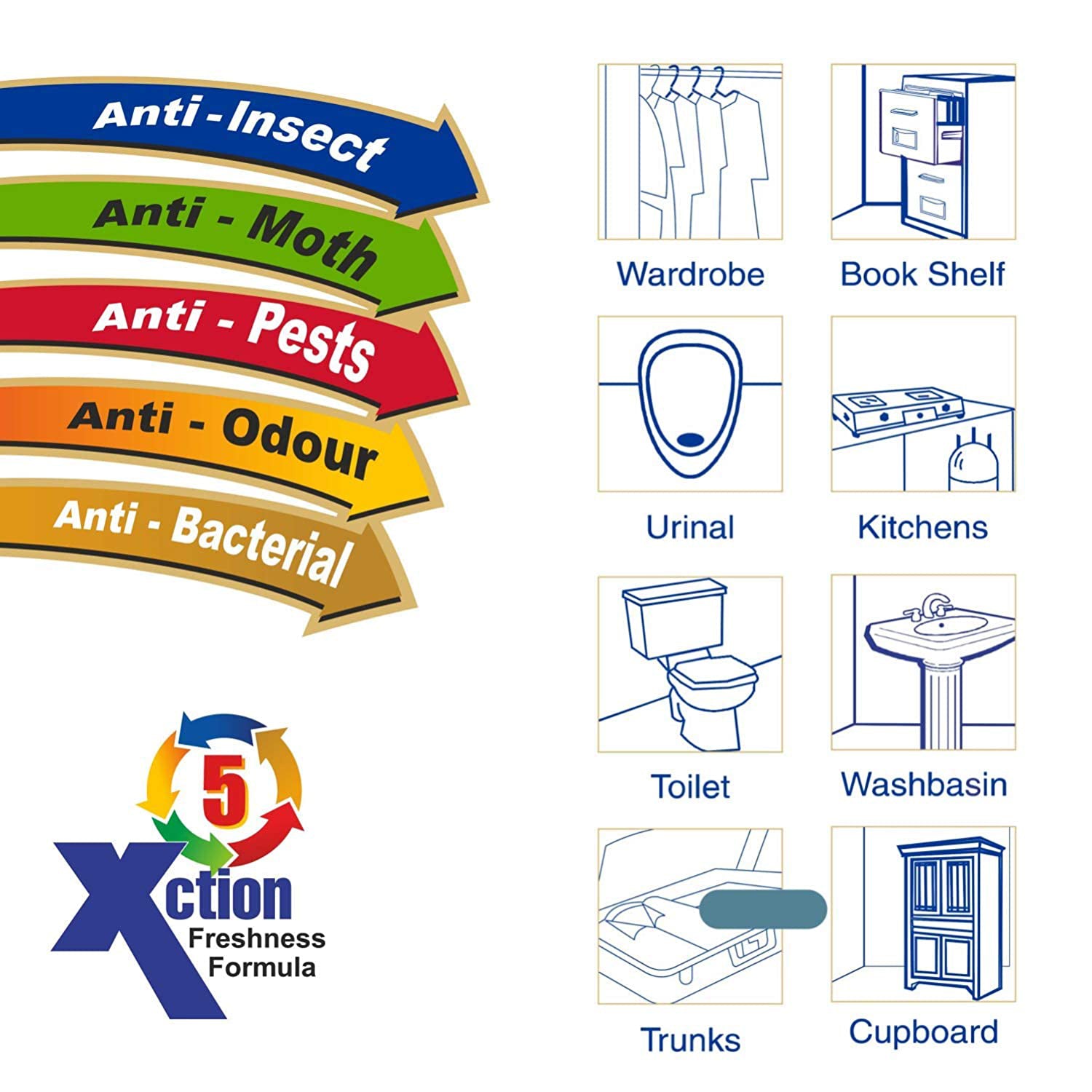 Features: *EASY TO USE: Simply unwrap each unit and hang it in the bathroom. *LONG-LASTING: Each bathroom freshener pack lasts upto 4-5 weeks( 30 days to More ). *Ideal to use in small spaces like cupboards, shoe racks, bathrooms, etc *Odour neutralising freshener to tackle unpleasant smell.