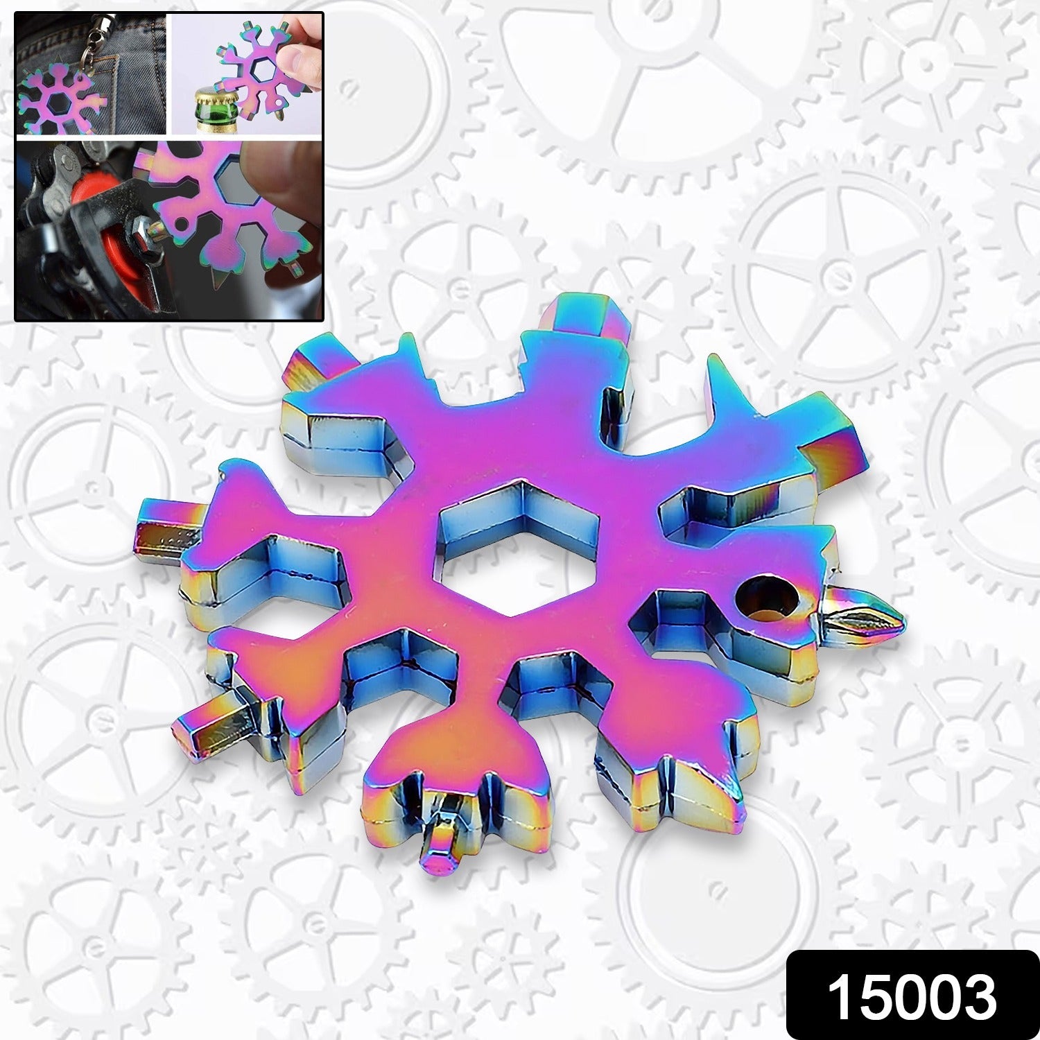Features - 18-in-1 multi-tool can be used under several conditions. Unique snowflake shaped design small and easy to carry. - You can also use it to open the beer bottle turn the screw fix snowboarding and bicycle open carton box and so on. - Multi-functional: screwdriver wrench unpack-er bottle opener key hole etc. it combines several functions in one single tool, very practical. Box Cutter, Bottle Opener, Key Chain Slotted Screwdriver: Metric (millimeter) - 4; SAE (inch) - 5/32, Phillips Screwdriver: Metric (millimeter) - 5; SAE (inch) - 3/16, Allen Wrench: Metric (millimeter) - 3-4-5-6-8-9; SAE (inch) - 1/8-5/32-3/16-1/4-11/32-6/16, Outer Hex Wrench: Metric (millimeter) - 6-7-8-9-10-11-12; SAE (inch) - 1/4-9/32-11/32-6/16-3/8-7/16-15/32