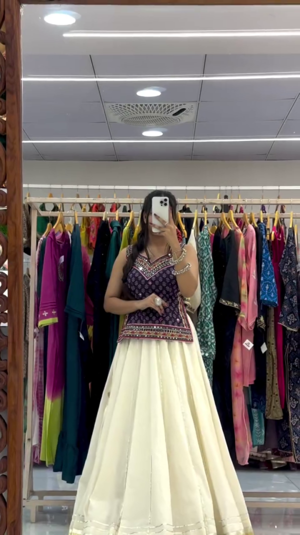Statement Mirror Work Crop Top: Intricately embellished with reflective mirror accents and fine embroidery for a festive sparkle.