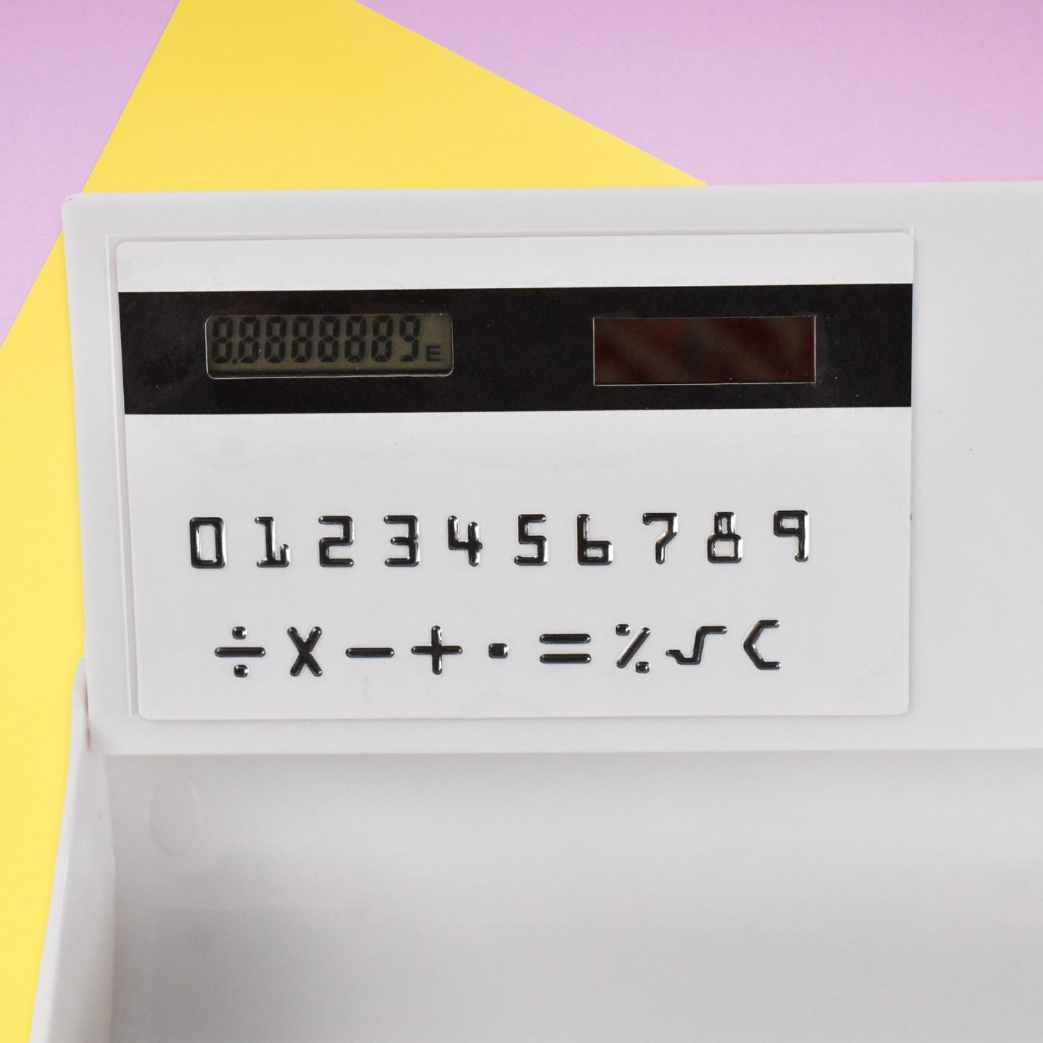 The stationery pencil case has a built-in mirror and calculator.